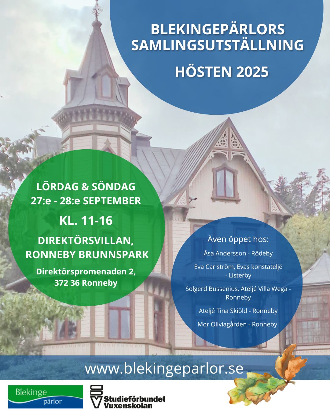 Blekingepärlors höstutställning – En samlingsutställning i Direktörsvillan i Ronneby Brunnspark 2025.